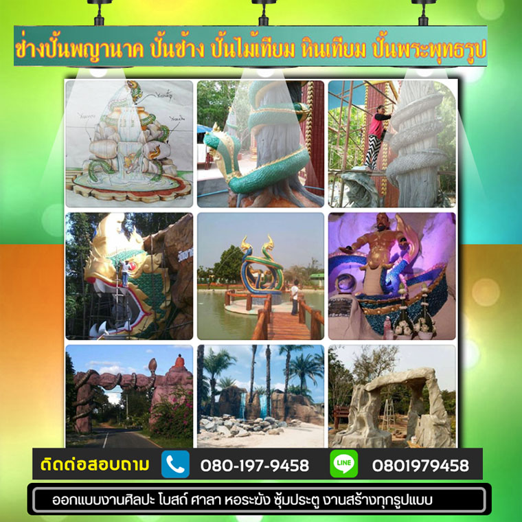 ช่างปั้นพญานาค โทร : 080-1979458 รับปั้นพระ สร้างโบสถ์ ปั้นรูปเหมือน ออกแบบวัด ปั้นปูนสด